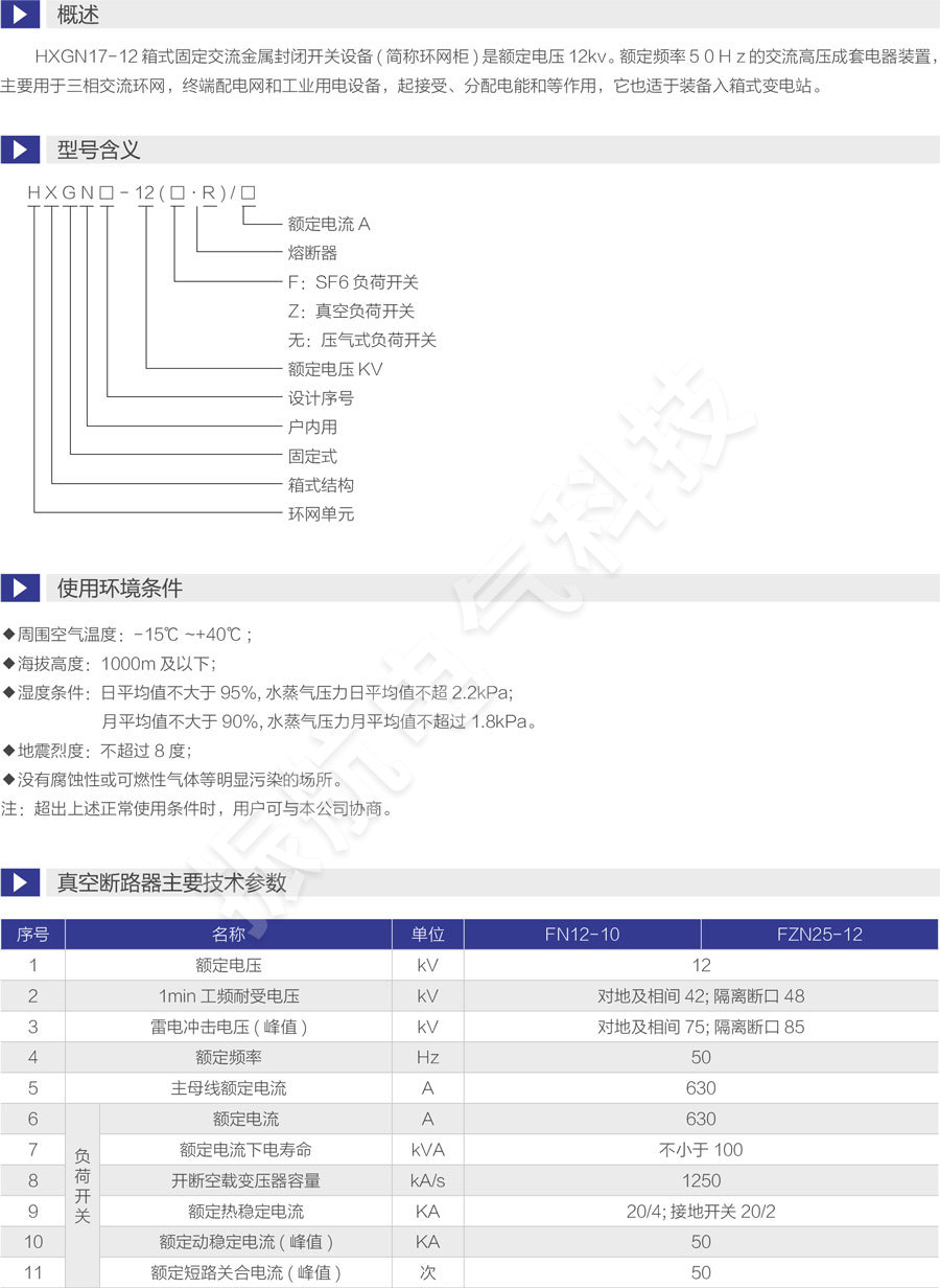 產品名稱:HXGN17-12高壓環網柜